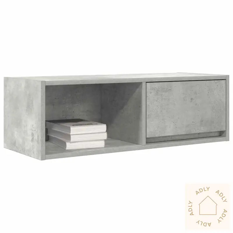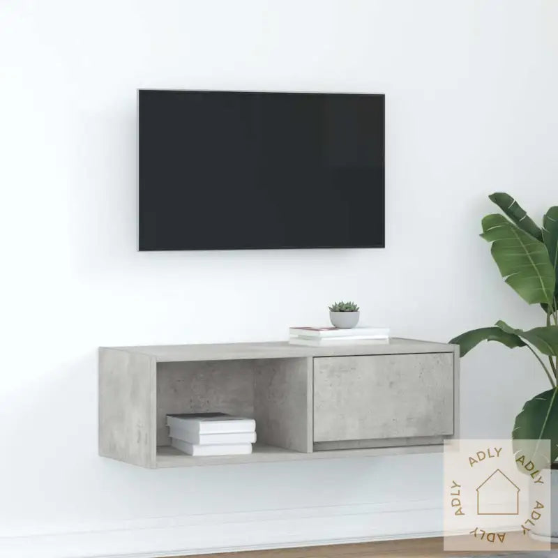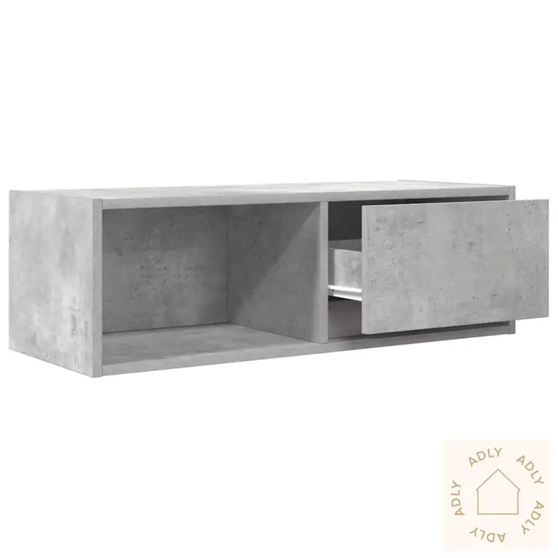 Stabilt og slitesterkt materiale: Benken er laget av konstruert tre, som gir en jevn og robust overflate. Dette materialet tåler fuktighet, motvirker vridning og sprekker, og sikrer lang holdbarhet – perfekt når du ser etter slitesterke møbler som tåler hverdagsbruk og vil holde seg fine lenge.Rikelig med oppbevaringsplass: Denne TV-benken har god plass med en praktisk kombinasjon av hylle og skuff. Her kan du enkelt organisere magasiner, bøker, DVD-er og multimedieenheter, samtidig som alt er samlet på ett sted og lett tilgjengelig.Stabil og solid bordplate: Platen på toppen er ideell for TV-en din, lydanlegg eller dekorative favoritter som vaser og potteplanter. Den tåler mye vekt og gjør at du trygt kan vise frem både teknologi og estetiske ting.Plassbesparende design: Fordi benken festes rett på veggen, frigjør du viktig gulvplass – perfekt for små rom hvor hver kvadratmeter teller. Med denne løsningen får du det luftig og ryddig rundt deg, og du får fleksibilitet til å kombinere den med andre møbler eller til og med utendørsmøbler for en helhetlig stil.Enkel å vedlikeholde: Den glatte overflaten gjør det enkelt å tørke av og holde støvfritt bare med en fuktig klut. Dette minimerer både vedlikehold og tidsbruk, slik at du får mer tid til å kose deg hjemme eller ute i hagen.Farge: BetonggråMateriale: Konstruert treSamlet mål: 80 x 31 x 25,5 cm (B x D x H)Skuffedimensjoner: 37 x 23,5 x 19,5 cm (B x D x H)Totalt maks. vektkapasitet: 60 kgMaks. vektkapasitet per hylle: 20 kgMaks. vektkapasitet per skuff: 5 kgMed 1 skuff og 1 hylleMontering kreves: ja