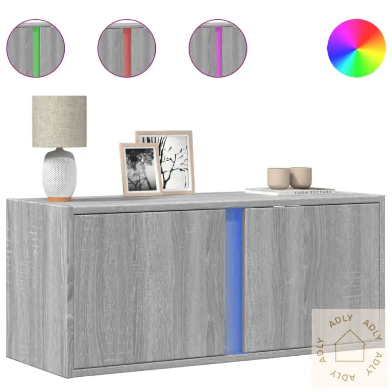 Stabilt og slitesterkt materiale: Den er laget av konstruert tre, noe som gir solid holdbarhet og stabilitet. Dette materialet har jevn overflate, og er både motstandsdyktig mot fuktighet og vridning, slik at du kan stole på at TV-benken holder formen lenge – perfekt for alle typer rom i hjemmet.RGB LED-lys for en hyggelig atmosfære: Med innebygde LED-lys kan du endre lysets innstilling, farge og lysstyrke akkurat slik du vil ha det. Det gir deg mulighet til å sette personlig preg på stua eller underholdningsrommet, og skape den atmosfæren du ønsker til filmkvelder eller gaming.Rikelig med oppbevaringsplass: Du får god plass til å organisere alt fra bøker og magasiner til medieutstyr og annet smått du vil ha tilgjengelig – perfekte møbler til hjemmet for deg som setter pris på orden og lett tilgang.Plassbesparende: Siden TV-skapet henges på veggen gjør du plass til annet på gulvet, eller du lar rommet føles større og mer åpent. Perfekt for mindre rom eller for deg som vil utnytte hver kvadratmeter maksimalt.DIY-design: Det flytende designet gir deg friheten til å bruke TV-benken alene eller kombinere den med andre veggmonterte møbler for å bygge ditt eget personlige mediesenter. Fleksibiliteten gjør det enkelt å tilpasse etter behov – uansett om du skal skape et nytt hjemmekontor eller en hel elektronikkstasjon.Godt å vite: