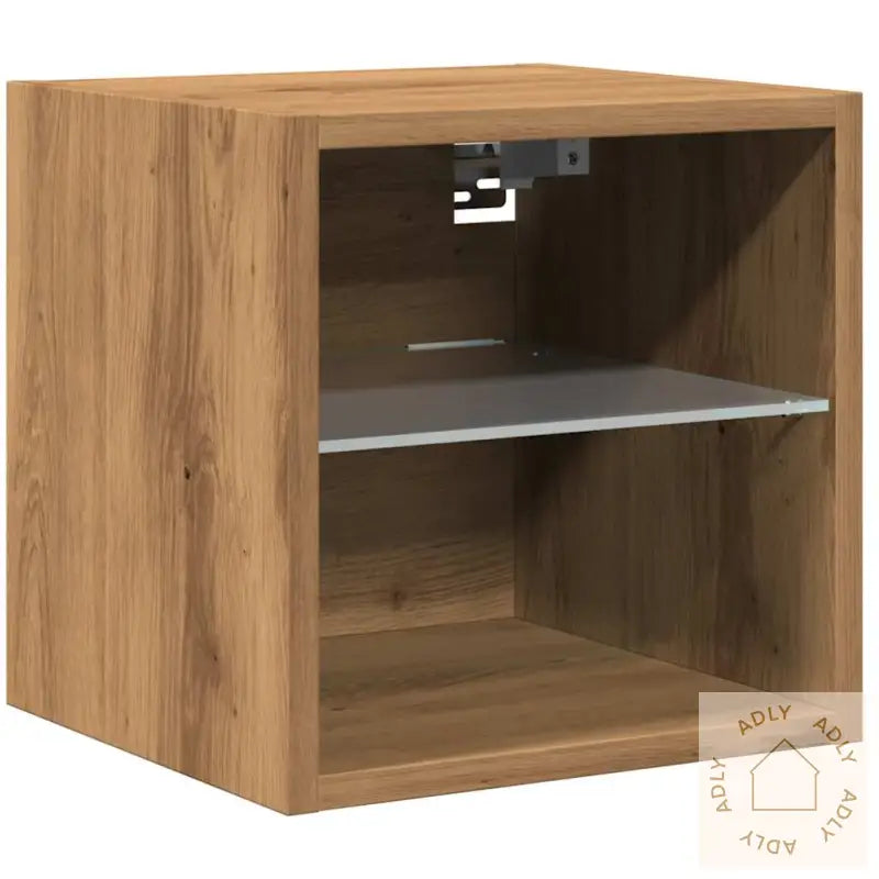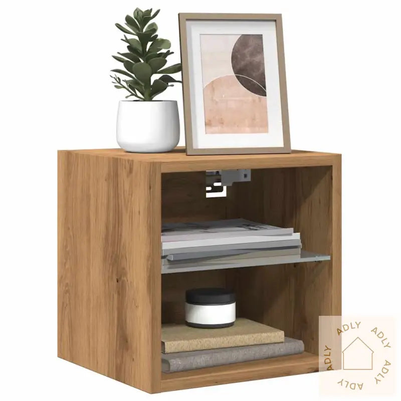 Skruer og plugger til veggmontering følger ikke med, så det er lurt å velge festeutstyr som passer din veggtype. Er du usikker, rådfør deg gjerne med en fagperson. Følg monteringsanvisningen nøye for best resultat.Produktet har USB-kontakt og fungerer med en sertifisert 5V USB-strømkilde (ikke inkludert).Farge: artisan eikMateriale: konstruert treMål: 30 x 28,5 x 30 cm (B x D x H)Mål rom: 27 x 28,5 x 13,5 cm (B x D x H)Med glasshylleMontering kreves: ja