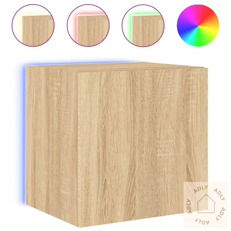 - RGB LED-lys: Skapet leveres med RGB LED-lys som gir deg muligheten til å velge mellom mange levende farger og lysinnstillinger. De justerbare LED-lysene setter ikke bare stemningen og gir rommet et moderne preg, men gjør TV-benken til et ordentlig blikkfang i stuen eller på soverommet.