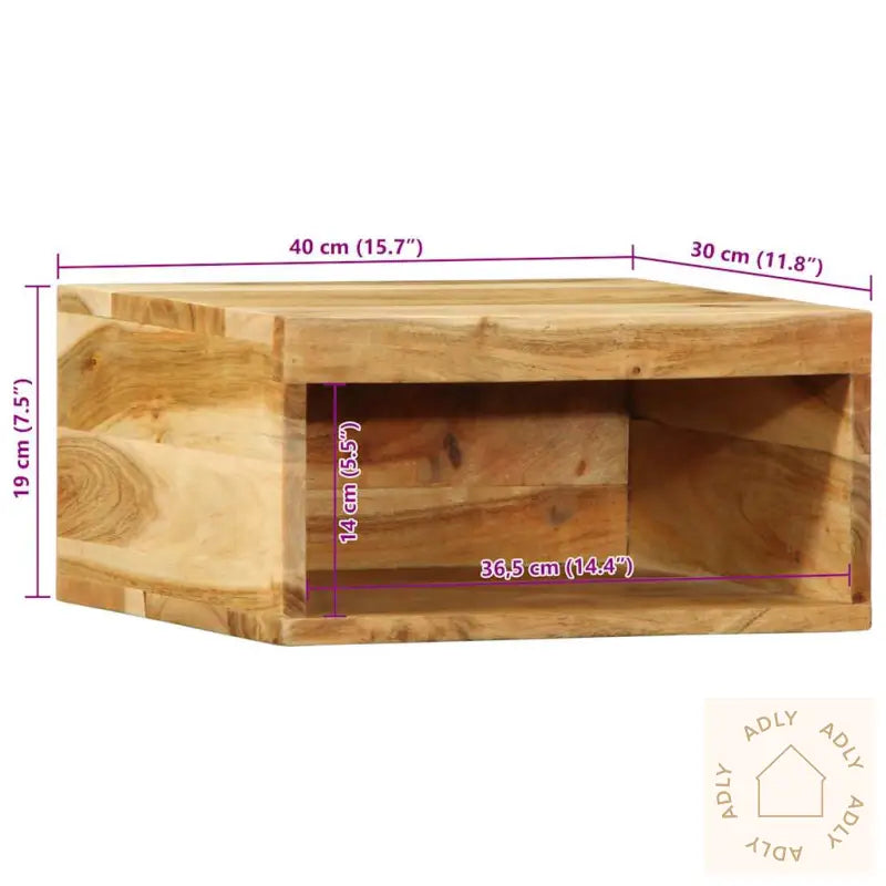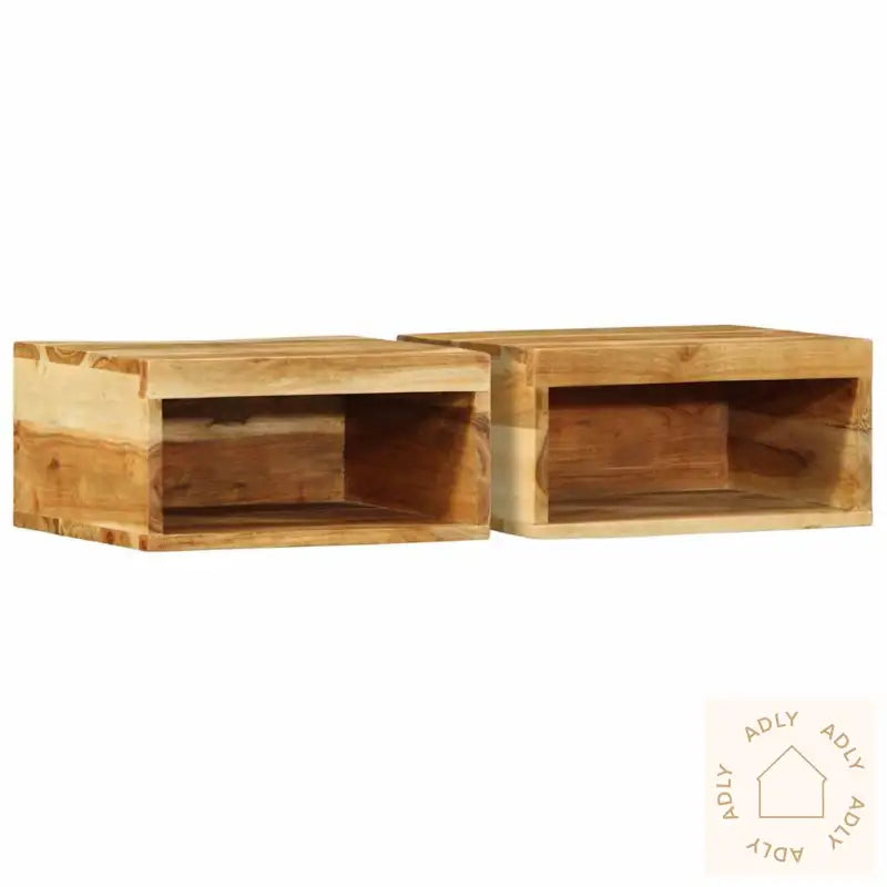 Robust og stabilt materiale: Heltre akasie gir disse skapene en eksepsjonell kvalitet. Akasietre er kjent for sin styrke, holdbarhet og lange levetid – egenskaper som gjør det ettertraktet både til innemøbler og utendørsmøbler, inkludert hagemøbler. De naturlige fargevariasjonene og det karakteristiske kornmønsteret setter et unikt preg på hvert enkelt skap, og gir en varm og innbydende følelse i rommet.Rikelig med oppbevaringsplass: Med god lagringsplass har du alltid bøker, magasiner, fjernkontroller, DVD-er eller andre multimedieenheter innen rekkevidde – alt kan organiseres på en enkel måte. Perfekt for deg som vil holde det stilrent og oversiktlig uten rot.Plassbesparende: Siden TV-skapet kan monteres direkte på veggen, åpnes gulvflaten opp, noe som gir rommet et luftig og moderne uttrykk. Dette gjør det enkelt å kombinere med andre møbler i hjemmet og gir fleksibilitet for interiørdesign.Enkelt å vedlikeholde: Akasietre krever minimalt med vedlikehold og er lett å holde rent – du trenger bare en fuktig klut for å holde det pent. Perfekt for deg som ønsker både funksjonalitet og brukervennlighet i hverdagen.Materiale: heltre akasieMål (hver): 40 x 30 x 19 cm (B x D x H)Maks. vektkapasitet (totalt): 60 kgMontering kreves: jaLeveransen inneholder:2 x vegghengte nattbord