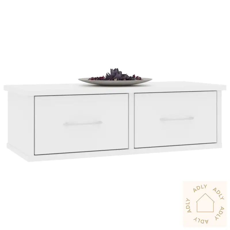 Denne veggmonterte hyllen med 2 skuffer gir smarte lagringsmuligheter til ethvert rom. Den passer perfekt i gangen til organisering av småsaker, på soverommet under et speil som sminkeområde, eller i stua der du enkelt kan stille ut dekorative gjenstander. Som møbler til hjemmet, gir denne hyllen fleksibilitet og er lett å tilpasse enhver innredning. Den er laget av høykvalitets konstruert tre, noe som sikrer både styrke og lang levetid, selv ved daglig bruk.
