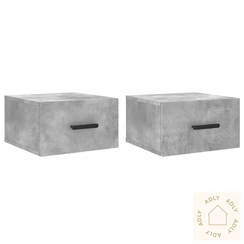 Skruer og plugger til veggmontering følger ikke med. Bruk typer som passer dine vegger. Er du usikker, anbefales det å rådføre seg med fagfolk. Husk å følge monteringsanvisningen nøye.Farge: betonggråMateriale: konstruert treMål: 35 x 35 x 20 cm (B x D x H)Montering kreves: jaLeveransen inneholder:2 x vegghengte nattbord