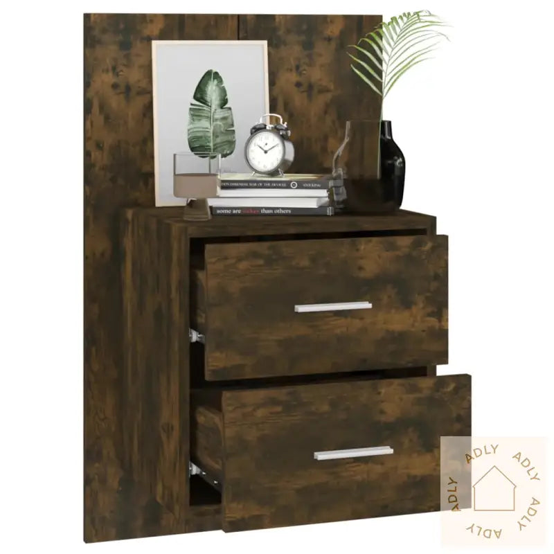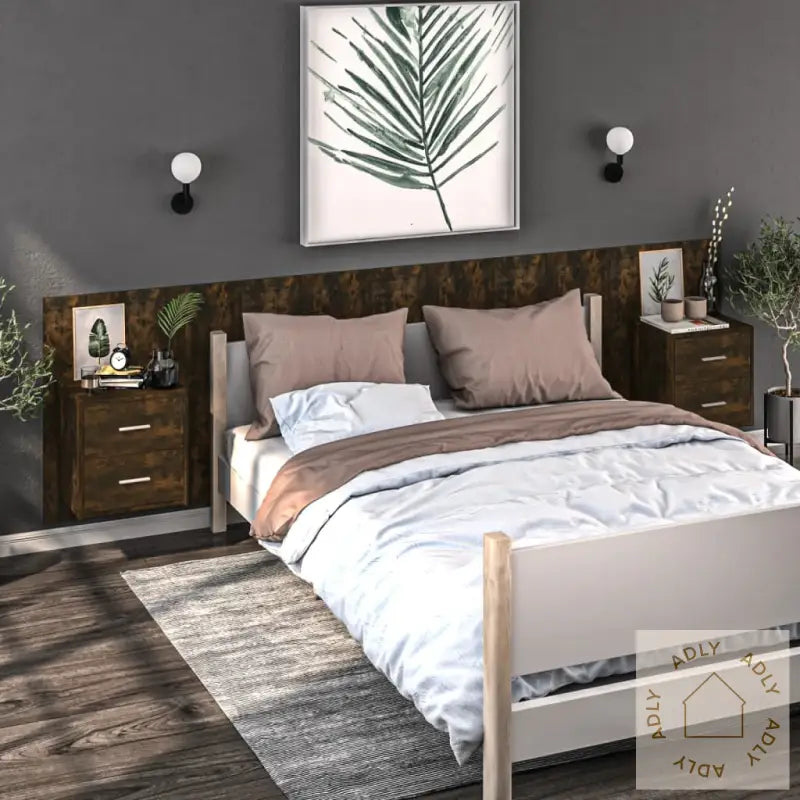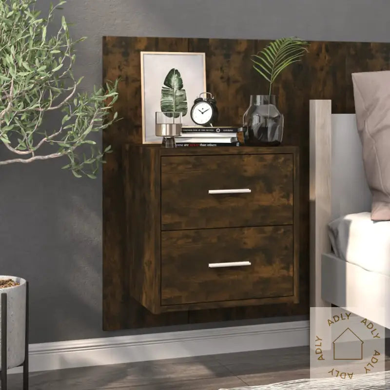 Skrue(r) og plugg(er) for inne i veggen følger ikke med. Velg skruer og plugger som passer for nettopp din veggtype. Om du er usikker på hva som passer, anbefales det å søke profesjonell hjelp. Husk å lese og følge instruksjonene nøye før du monterer møbelet.Farge: røkt eikMateriale: konstruert treMål: 48,5 x 32,5 x 80 cm (B x D x H)Maksimal lastekapasitet (totalt): 50 kgMontering kreves: jaLeveransen inneholder:2 x vegghengte nattbordDisse nattbordene gir deg både design og funksjonalitet, og blir et blikkfang uansett omgivelse. De passer perfekt sammen med andre bokhyller og stående hyller hvis du ønsker et helhetlig uttrykk blant dine møbler til hjemmet. Perfekt for deg som vil kombinere stil, ryddighet og bedre plassutnyttelse hjemme!