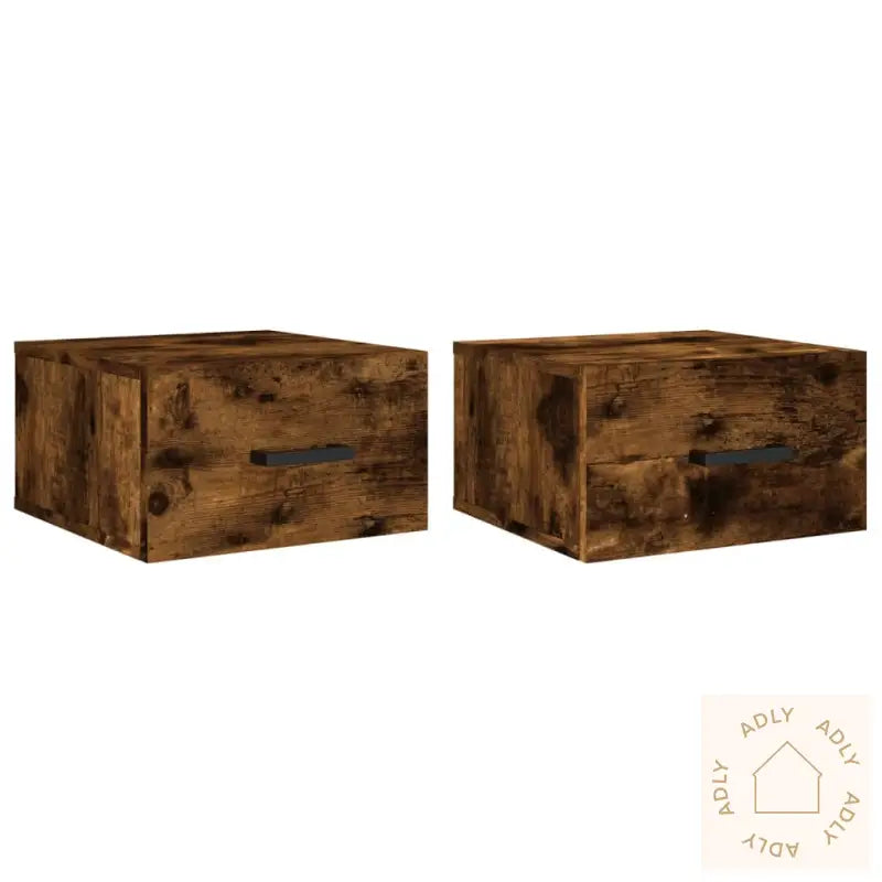 Skruer og plugger for veggmontering følger ikke med. Bruk alltid festemidler som passer til veggen hjemme hos deg, spesielt om du har gips eller mur. Er du usikker, anbefaler vi å spørre noen som kan dette for å være trygg på at møblene henger sikkert. Husk også å følge monteringsanvisningen nøye.Farge: røkt eikMateriale: konstruert treMål: 35 x 35 x 20 cm (B x D x H)Montering kreves: jaLeveransen inneholder:2 x vegghengte nattbordNattbordene passer inn i de fleste hjemmestiler og matcher perfekt sammen med andre moderne møbler til hjemmet og utendørsmøbler fra vårt sortiment. Med sitt tidløse design og smarte løsning, gir disse nattbordene ekstra funksjonalitet og en oppgradert atmosfære til soverommet ditt.