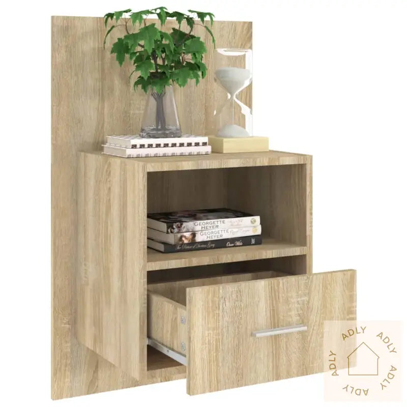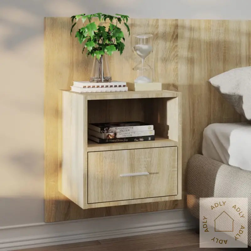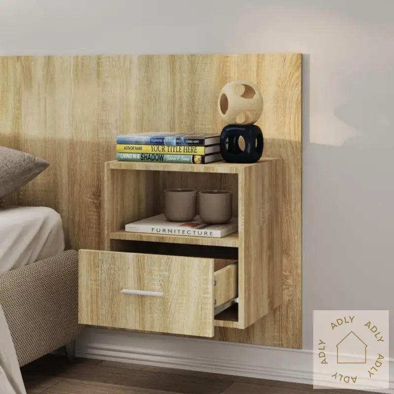 Veggmontert design: Den flytende nattbord-løsningen festes direkte på veggen, noe som gjør at du får ekstra lagringsplass uten å ofre verdifull gulvplass. Dette gjør den ideell for mindre rom eller hvis du vil ha en minimalistisk look med smarte møbler.Flerfunksjonelt skap: Det flytende nattbordet gir plass til det viktigste du vil ha tilgjengelig ved sengen – enten det er bøker, dekorative detaljer, ornamenter eller alarmklokken. Det kan også fint kombineres med en sengegavl for et helhetlig uttrykk i interiøret ditt.Oppbevaringsskuff: Med en romslig skuff får du god plass til oppbevaring av småting, slik at du alltid kan ha orden og holde nattbordet ryddig. Perfekt for alt fra ladekabler til fjernkontroller.Materiale som er lett å rengjøre: Det konstruerte treverket har eksepsjonell kvalitet med en glatt overflate som gir styrke, stabilitet og god motstand mot fuktighet. Dette gjør at nattbordet er slitesterkt og enkelt å holde rent, så du kan bruke mer tid på å nyte dine nye møbler istedenfor rengjøring.ADVARSEL: