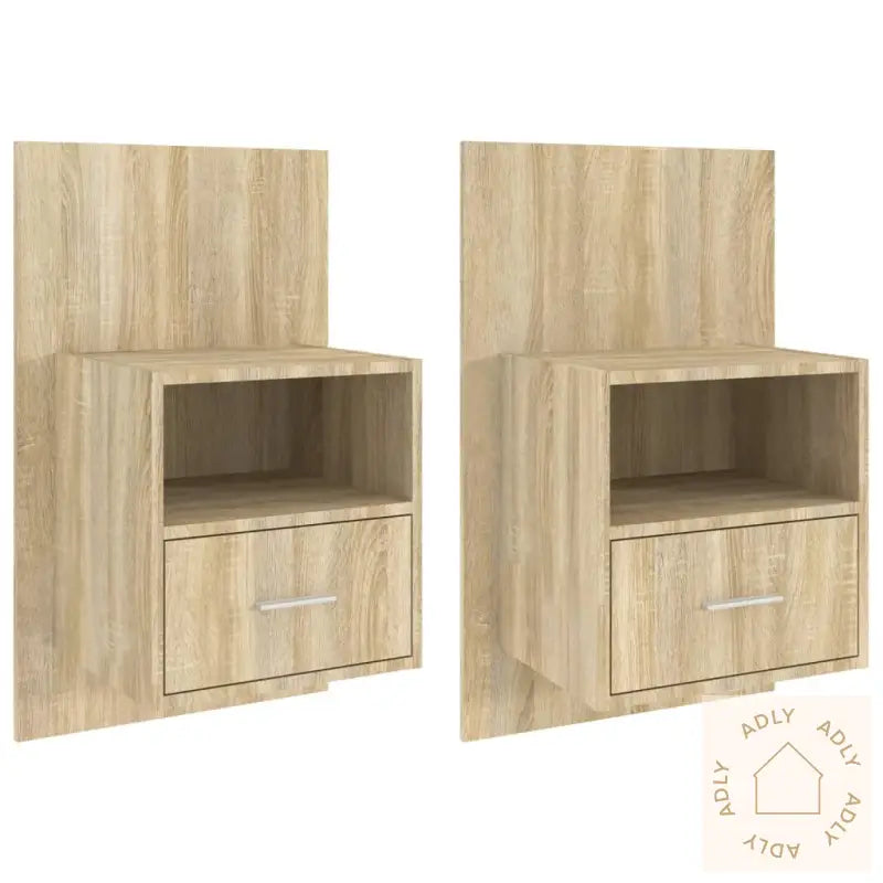 Skrue(r) og plugg(er) for montering i vegg følger ikke med. Bruk skrue(r) og plugg(er) som passer til din veggtype. Om du er usikker, søk profesjonell hjelp. Les og følg veiledningene nøye for montering.Farge: Sonoma eikMateriale: Konstruert treSamlet mål: 48,5 x 32,5 x 80 cm (B x D x H)Mål (bare nattbord): 38 x 31 x 39,5 cm (B x D x H)Montering kreves: jaLeveransen inneholder:2 x vegghengte nattbord