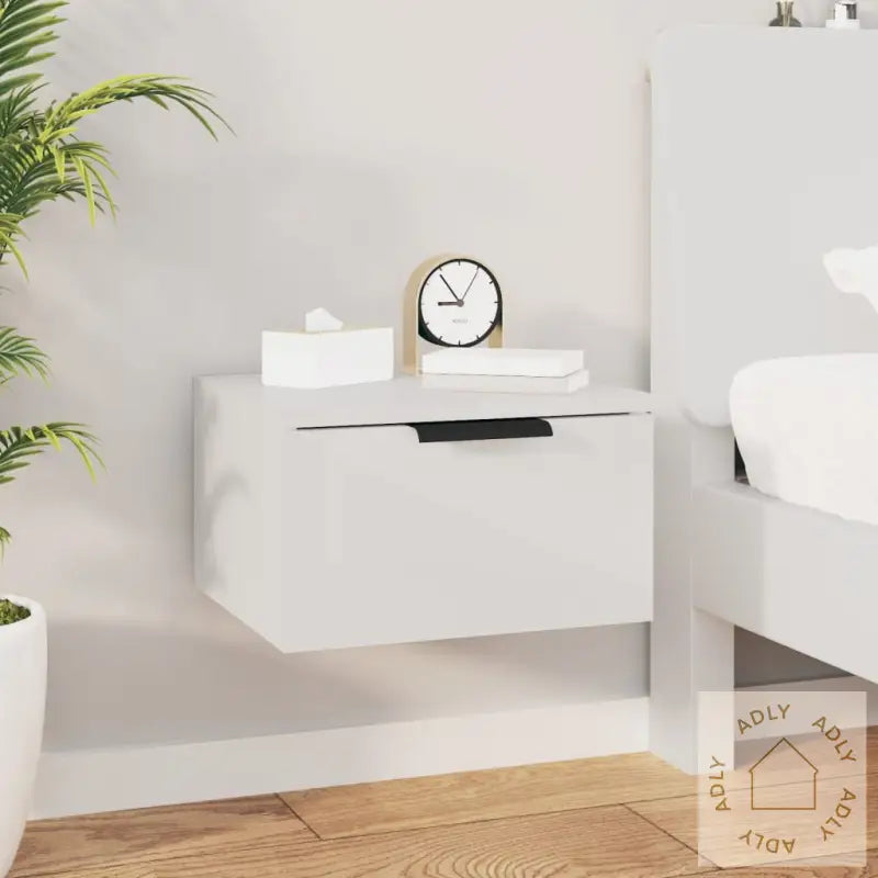 Dette moderne veggmonterte nattbordet med sitt stilrene, elegante design vil være et tidløst tilskudd til innredningen i hjemmet ditt. Perfekt for deg som ønsker praktiske møbler til hjemmet uten å ofre gulvplass.