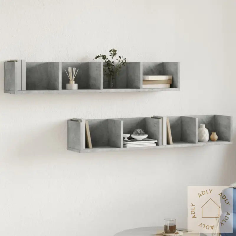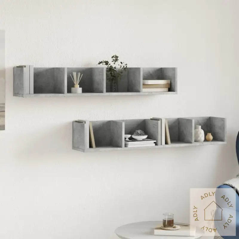 Skruer og plugger til veggmontering følger ikke med. Velg alltid festemidler som passer til dine vegger, og spør gjerne en fagperson hvis du er usikker. Følg montasjeguide steg for steg for best resultat.Farge: betonggråMateriale: konstruert treMål: 99 x 18 x 16,5 cm (B x D x H)Maksimal lastekapasitet: 20 kgMontering kreves: jaLeveransen inneholder:2 x veggkabinetter