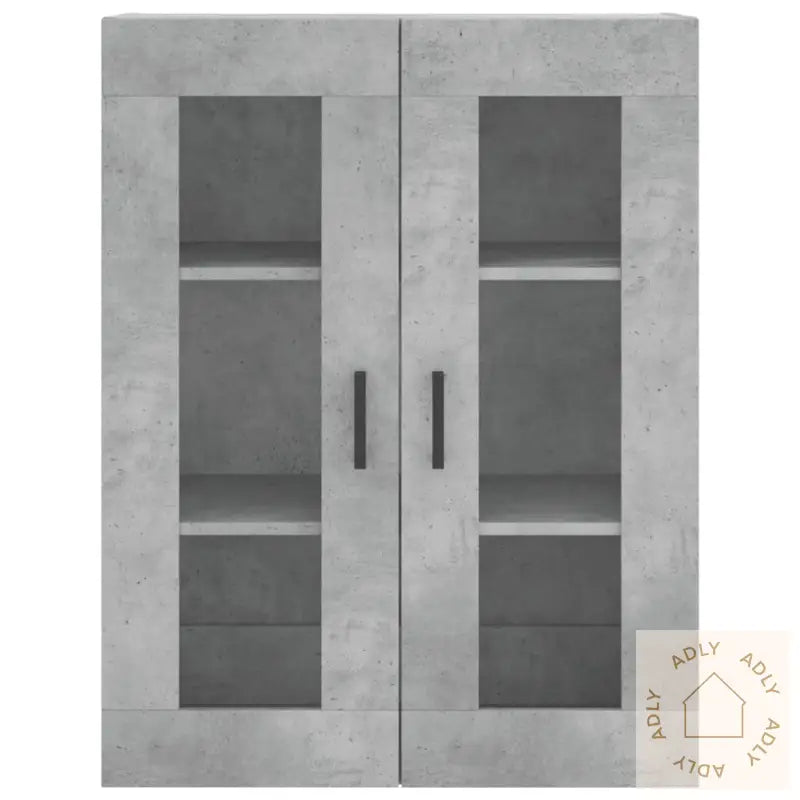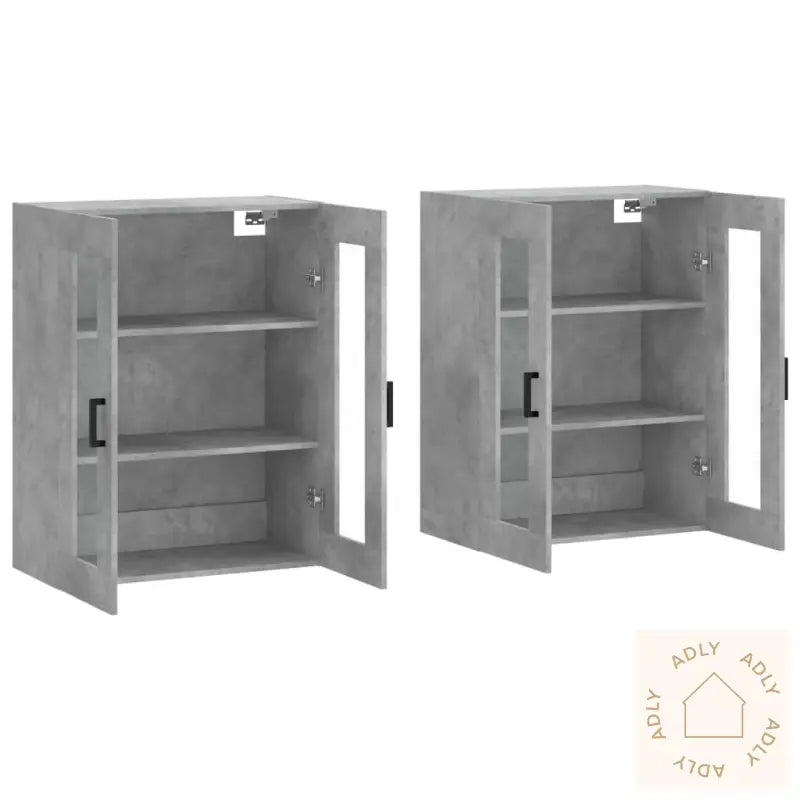 Skruer og plugger for veggmontering følger ikke med. Bruk festemidler som passer til veggen hjemme hos deg. Er du usikker, anbefales det å ta kontakt med en profesjonell. Les og følg alltid monteringsanvisningene nøye.Farge: betonggråMaterialer: konstruert tre, glassMål (hver): 69,5 x 34 x 90 cm (B x D x H)Montering kreves: jaLeveransen inneholder:2 x vegghengte skap