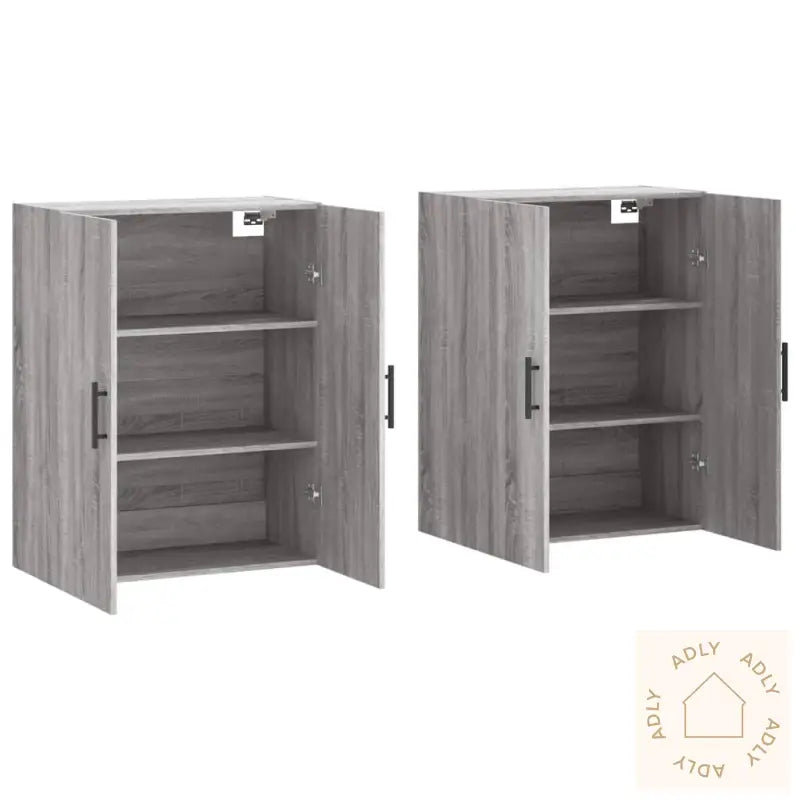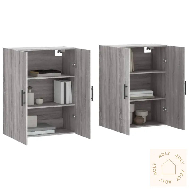 Skruer og plugger for veggmontering følger ikke med. Bruk riktige fester til din type vegg, og spør gjerne en fagperson hvis du er usikker. Følg instruksjonene nøye under montering for trygg bruk.Farge: grå sonomaMateriale: konstruert treMål (hver): 69,5 x 34 x 90 cm (B x D x H)Montering kreves: jaLeveransen inneholder:2 x vegghengte skap