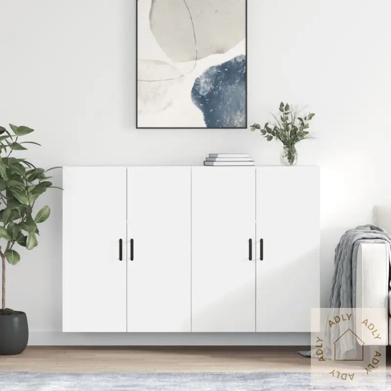 Slitesterkt materiale: Det solide konstruerte treverket har en glatt overflate, noe som både gir skapene et eksklusivt uttrykk og sørger for lang levetid. Materialet er kjent for sin styrke, stabilitet og evne til å tåle fuktighet – perfekt for møbler til hjemmet med fokus på kvalitet og holdbarhet.Rikelig med lagringsplass: Skapene har god plass bak dørene så du enkelt kan holde orden på både hverdagslige ting og småsaker. Det gjør det enklere å organisere hjemmet slik du vil ha det.Veggmontert funksjon: Siden skapene monteres på veggen, frigjør du gulvplass og skaper et ryddigere, mer åpent uttrykk. Ideelt hvis du ønsker fleksible løsninger og ser etter praktiske møbler med smart lagring.Praktisk design: Dørene beskytter eiendelene dine mot støv, og med de brukervennlige håndtakene får du enkel tilgang til alt innholdet når du trenger det. Disse egenskapene gjør skapene supre enten du trenger dedikert oppbevaringsplass eller leter etter et supplement til bokhyller og stående hyller.Bredt bruksområde: Det minimalistiske utseendet lar deg bruke disse skapene i forskjellige rom – fra stue til kontor. De funker like godt alene som sammen med andre dekorative elementer og gir deg frihet til å tilpasse hjemmet ditt etter dine egne behov og stilvalg.Godt å vite: