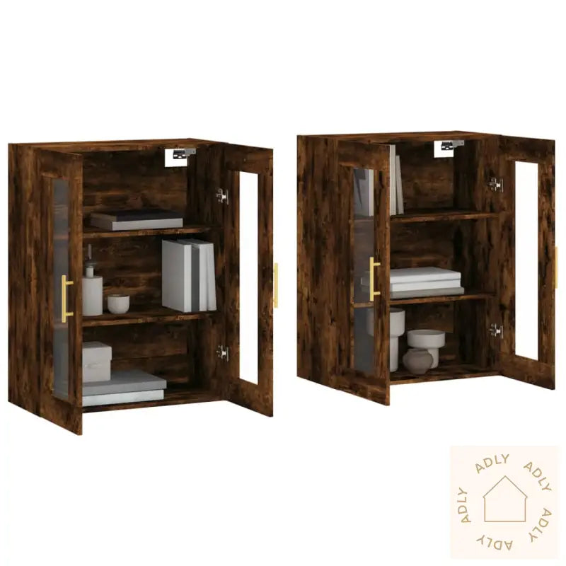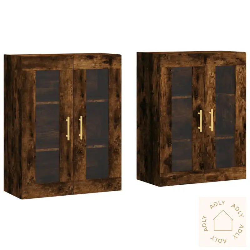 Skruer og plugger for veggmontering er ikke inkludert. Velg skruer og plugger som passer akkurat dine vegger. Hvis du er usikker, anbefaler vi å spørre en fagperson. Følg alltid monteringsanvisningen nøye for sikkert resultat.Farge: røkt eikMaterialer: konstruert tre, glassMål (hver): 69,5 x 34 x 90 cm (B x D x H)Montering kreves: jaLeveransen inneholder:2 x vegghengte skap