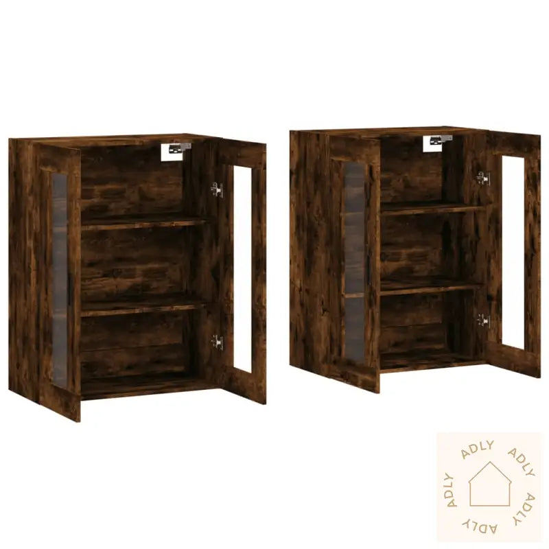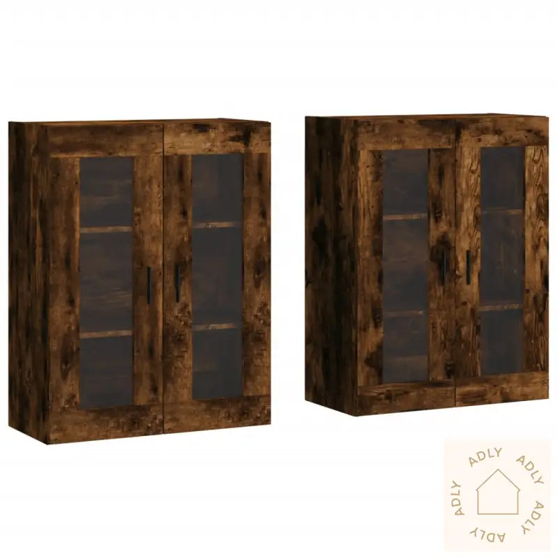 Skruer og plugger for veggmontering følger ikke med. Husk å velge type som passer akkurat dine vegger, og tenk sikkerhet – spør gjerne en fagperson hvis du er usikker. Følg alltid bruksanvisningen nøye.Farge: røkt eikMaterialer: konstruert tre, glassMål (hver): 69,5 x 34 x 90 cm (B x D x H)Montering kreves: jaLeveransen inneholder:2 x vegghengte skap