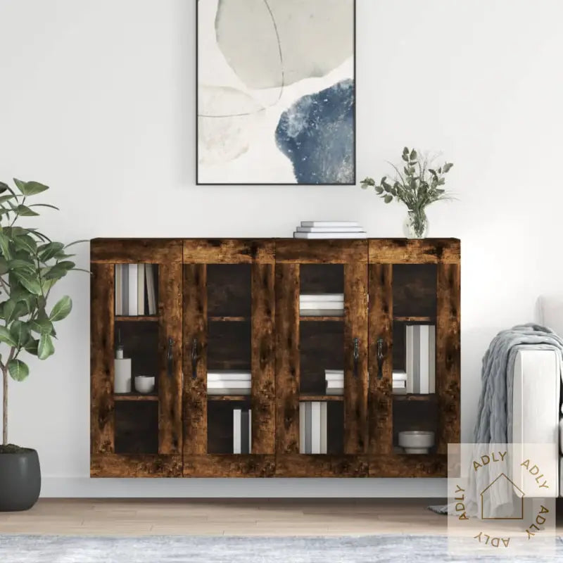 Solid materiale: Skapene er laget av høykvalitets konstruert tre, som har en jevn og flott finish. Dette materialet gir ikke bare en robust og stabil konstruksjon, men er også utviklet for å motstå fuktighet over tid. Den slitesterke utførelsen gjør at skapene holder seg fine år etter år.Rikelig med lagringsplass: De vegghengte skapene tilbyr mye plass til oppbevaring av alt fra bøker til servise og hverdagslige småting. Den elegante glassdøren gir deg muligheten til å vise frem favorittdekor, fine vaser eller andre ting du gjerne vil ha synlig uten at de samler støv.Veggmontert design: Skapene monteres enkelt på veggen, og dette frigjør verdifull gulvplass så du får mer rom til andre møbler til hjemmet eller til utendørsmøbler og hagemøbler hvis du ønsker et helhetlig uttrykk. Med denne løsningen holder du hjemmet organisert og oversiktlig.Allsidig oppbevaringsløsning: Disse skapene er fleksible i bruk – monter dem på veggen, eller plasser dem oppå en skjenk for å lage et moderne highboard og skape ekstra lagringsplass. Uansett hvordan du bruker dem, får du praktiske og stilfulle oppbevaringsmuligheter som passer ulike rom.Godt å vite:
