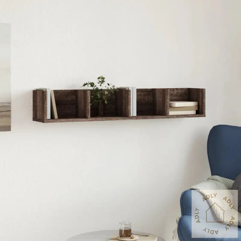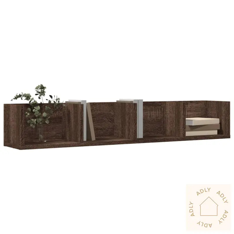 Dette veggskapet i brun eik gir hjemmet ditt et moderne og elegant preg. Det er en smart løsning som utnytter plassen på veggen til både oppbevaring og dekor, samtidig som det gjør den nakne veggen til et virkelig blikkfang med designerfølelse. Skapet passer perfekt inn med andre møbler til hjemmet og gir rommet personlighet.