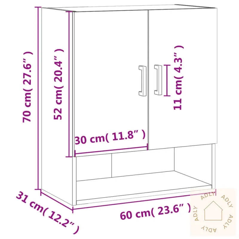 Slitesterkt materiale: Skapet er laget av konstruert treverk av høy kvalitet. Dette materialet har en jevn overflate, er solid og stabilt og tåler fukt uten problem. Perfekt om du ønsker møbler du kan ha glede av lenge!Rikelig med lagringsplass: Veggskapet gir deg gode oppbevaringsmuligheter for alt fra skjønnhetsprodukter til kjøkkenting og små hagemøbler. Du får orden på dine daglige nødvendigheter og slipper rot.Veggmontert funksjon: Praktisk design som gir ekstra gulvplass – perfekt for mindre rom eller der du ønsker å utnytte plassen maksimalt. Skapet monteres enkelt opp på veggen.Visningsfunksjon: Toppen av skapet gir en fin mulighet til å vise frem små dekorasjoner, bilder eller blomster. Du kan enkelt gi interiøret ditt det lille ekstra ved å kombinere det med andre stilrene møbler.Godt å vite: