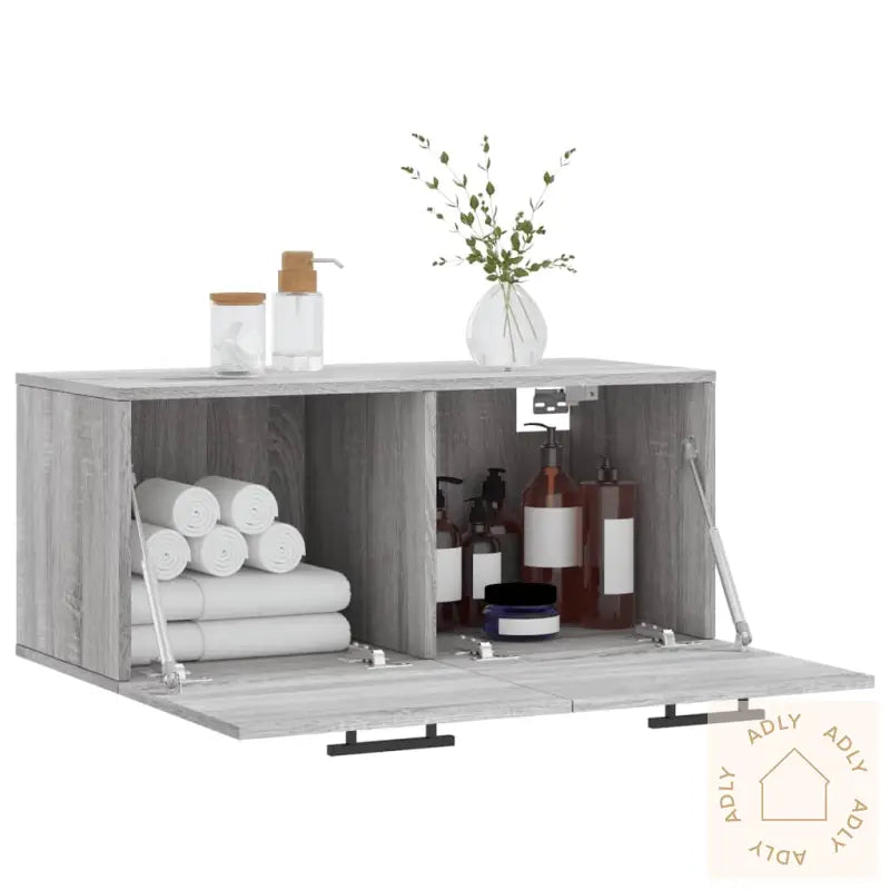 Skruer og plugger til veggmontering følger ikke med. Vi anbefaler å bruke festemateriell som passer til akkurat dine vegger. Rådfør deg gjerne med en fagperson hvis du er usikker, og følg instruksjonene nøye under montering.Farge: grå sonomaMateriale: konstruert treMål: 80 x 36,5 x 35 cm (L x B x H)Montering kreves: ja