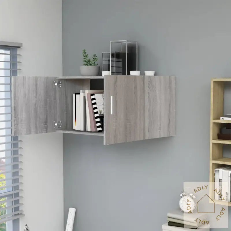 Skrue(r) og plugg(er) for montering i veggen følger ikke med. Velg passende skruer og plugger til din veggtype. Hvis du er usikker, ta kontakt med en fagperson. Sørg for å lese og følge instruksjonene nøye under montering.Farge: grå eik – gir et naturlig, tidløst uttrykkMateriale: konstruert treMål: 80 x 39 x 40 cm (B x D x H)Leveres med 2 dørerVeggmontert design for fleksibel plassering blant dine andre møblerMaksimal lastekapasitet (totalt): 60 kgMontering krevesMed dette veggskapet får du en praktisk og stilig lagringsløsning som glir sømløst inn sammen med andre møbler til hjemmet. Enten du trenger ekstra oppbevaring på stua, soverommet, gangen eller sammen med bokhyller og stående hyller, gir dette skapet deg både funksjon og stil.