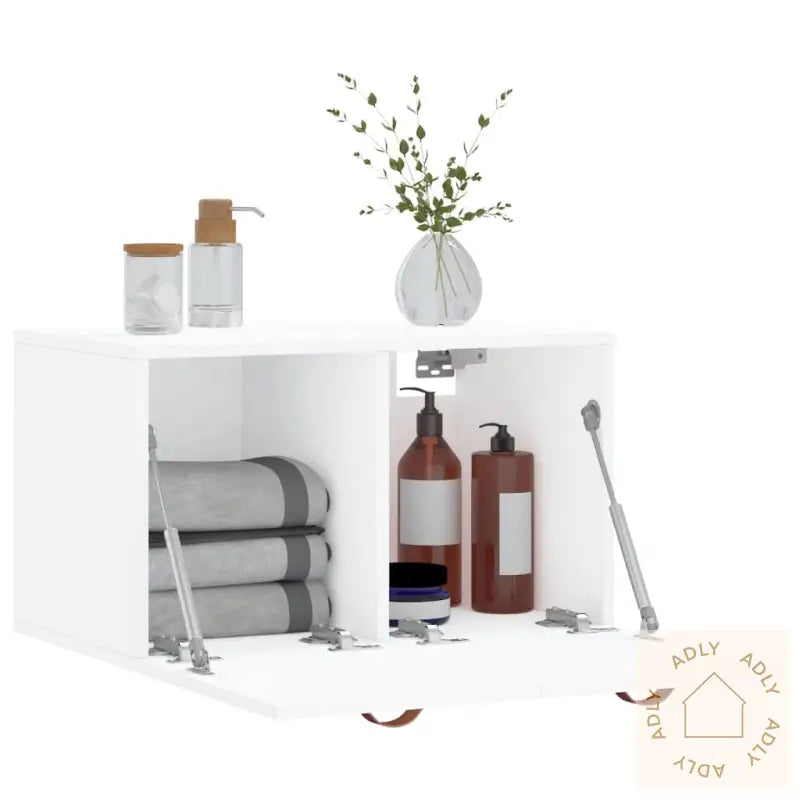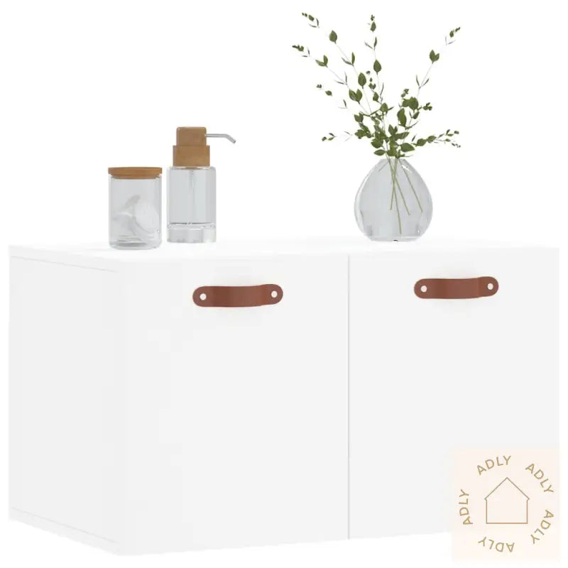Slitesterkt materiale: Skapet er laget av konstruert tre av høy kvalitet, noe som gir en jevn og fin overflate. Materialet er kjent for sin styrke, stabilitet og gode motstand mot fuktighet, slik at skapet holder seg pent over tid – et smart valg når du skal oppgradere dine møbler til hjemmet.Rikelig med lagringsplass: Skapet gir deg praktisk og enkel oppbevaring for småting og daglige nødvendigheter, og gjør det lettere å holde orden i rommet. Alt du trenger er samlet på ett sted og enkelt tilgjengelig.Veggmontert funksjon: Siden veggskapet henges opp på veggen, sparer du mye plass på gulvet – perfekt hvis du ønsker mer rom til andre møbler eller til fri bevegelse hjemme. Det gir deg også muligheten til å kombinere med bokhyller eller stående hyller for ekstra lagring.Visningsmuligheter: På toppen av skapet kan du stille ut bilder, dekorasjoner eller blomster for å sette personlig preg på interiøret ditt, og gjøre skapet til et innbydende blikkfang blant resten av møblene dine.Godt å vite: