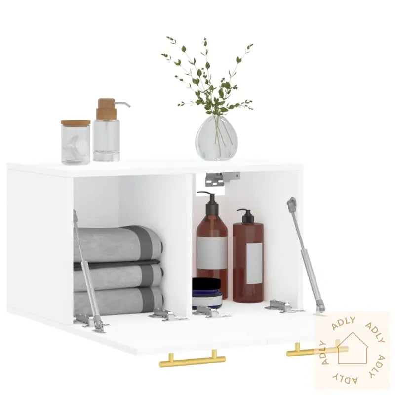 Slitesterkt materiale: Skapet er laget av konstruert treverk som gir en glatt overflate med høy styrke og stabilitet. Det tåler daglig bruk godt og har i tillegg motstand mot fuktighet, noe som gir deg langvarig glede av møbelet.Rikelig med lagringsplass: Med god plass inni skapet får du enkel organisering av tingene dine, enten det er små hverdagsartikler, servise, eller kanskje nips og tilbehør relatert til bokhyller og stående hyller. Alt holdes ryddig og alltid innen rekkevidde.Veggmontert funksjon: Siden det henges på veggen, frigjør du verdifull gulvplass – perfekt for mindre rom eller når du vil gjøre interiøret lettere og mer luftig. Skapet monteres enkelt direkte på veggen.Visningsfunksjon: Toppen av skapet egner seg supert til å stille ut yndlingsbilder, interiørdetaljer eller blomster, noe som virkelig kan gi rommet ditt en personlig og innbydende touch sammen med andre møbler til hjemmet.Godt å vite:
