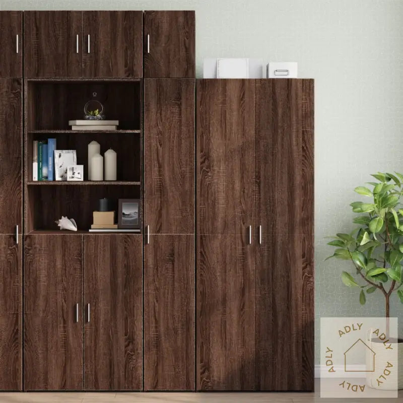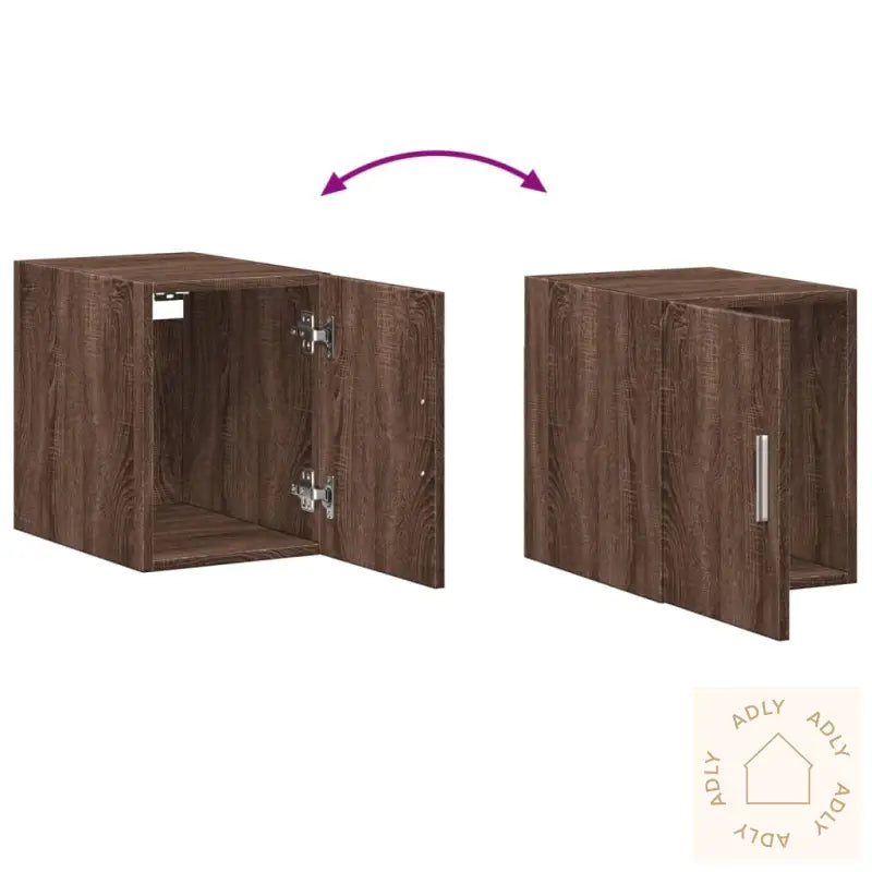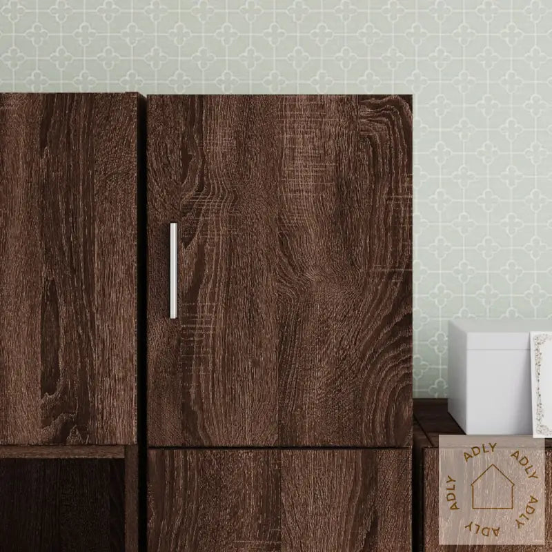Dette veggskapet i brun eik gir både stil og funksjonalitet til innredningen din, og er et ideelt valg når du ser etter møbler til hjemmet som kombinerer moderne design med praktiske løsninger.