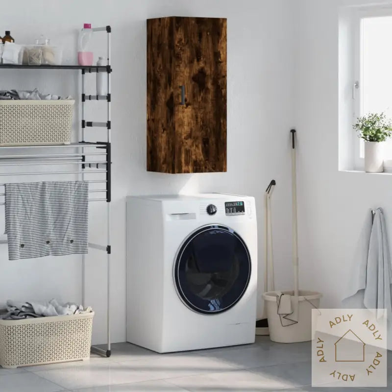 Skruer og plugger til veggmontering følger ikke med. Velg skruer og plugger som er tilpasset din veggtype. Følg alltid instruksjonene nøye. Er du usikker, ta kontakt med fagperson.Farge: røkt eikMateriale: konstruert treMål: 34,5 x 34 x 90 cm (B x D x H)Montering kreves: ja
