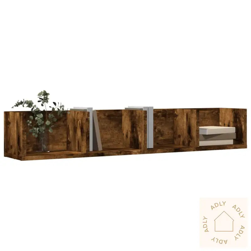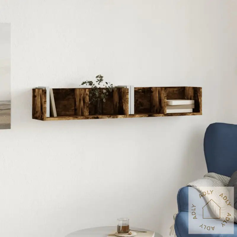 Solid materiale: Skapet er laget av konstruert treverk av høy kvalitet, med en jevn finish som gir solid styrke og langvarig stabilitet. Materialet tåler både fuktige omgivelser og daglig bruk, så du kan stole på at dette møbelet holder seg flott lenge.Rikelig med lagringsplass: Den stilrene, flytende hyllen har god plass og flere rom, slik at du enkelt får plass til bøker, pyntegjenstander, eller annet smått du vil ha samlet og lett tilgjengelig. Perfekt hvis du vil holde hjemmet organisert samtidig som du får vist frem favorittingene dine.Allsidig design: Med sin fleksible utforming kan skapet brukes som alt fra TV-benk over til oppbevaringshylle – monter det på veggen der du trenger ekstra lagringsplass eller et dekorativt element. Skapet gir et eksklusivt preg og gjør at veggplassen utnyttes maksimalt, enten i stua, gangen eller soverommet.Godt å vite: