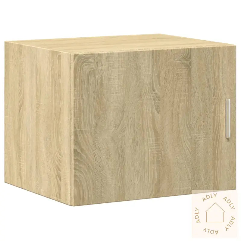 Holdbart materiale: Skapet er laget av konstruert tre av høy kvalitet, kjent for sin glatte overflate, styrke og stabilitet. Materialet har også god motstand mot fuktighet, noe som gir lang levetid og et vakkert utseende år etter år.Rikelig med lagringsplass: Det romslige oppbevaringsskapet gir deg god plass til å holde hverdagslige gjenstander, småting, eller tilbehør organisert og lett tilgjengelig. Perfekt for å få orden på stue, soverom, garasje eller andre rom der du ønsker smarte og funksjonelle løsninger.Plassbesparende: Ettersom skapet monteres direkte på veggen, får du ekstra oppbevaringsplass uten å oppta gulvplass. Dette bidrar til at området fremstår mer ryddig, og det gir deg bedre utnyttelse av plassen – ideelt for mindre hjem eller rom hvor hver kvadratmeter teller.Fleksibelt design: Skapdøren kan enkelt settes opp enten på venstre eller høyre side, slik at den passer perfekt til dine behov og innredningsønsker.Allsidig: Det hengende veggskapet kan også plasseres på toppen av andre skap, noe som gir deg enda flere muligheter til å bruke plassen effektivt. Takket være sitt tidløse uttrykk i sonoma eik, matcher dette skapet de fleste møbler og interiørstiler, enten det er i stuen, på soverommet, i garasjen eller i andre oppholdsrom.Godt å vite:
