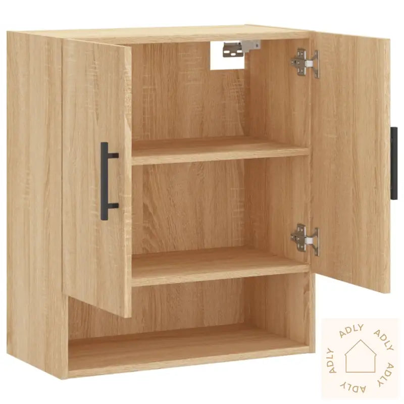 Dette veggskapet er både dekorativt og praktisk, og blir et flott supplement til dine møbler til hjemmet. Skapet sørger ikke bare for ekstra oppbevaringsplass, men gir også innredningen et løft med sitt moderne design i sonoma eik.