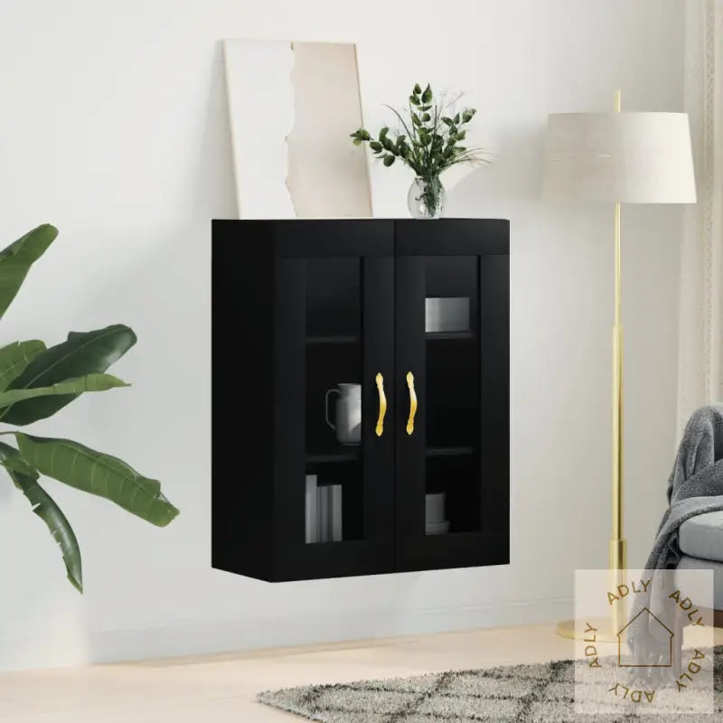 Skruer og plugger for veggmontering følger ikke med. Velg festemidler tilpasset akkurat din veggtype, og rådfør deg gjerne med fagperson om du er usikker. Følg alltid monteringsanvisningen nøye.Farge: svartMaterialer: konstruert tre, glassMål: 69,5 x 34 x 90 cm (B x D x H)Montering kreves: ja
