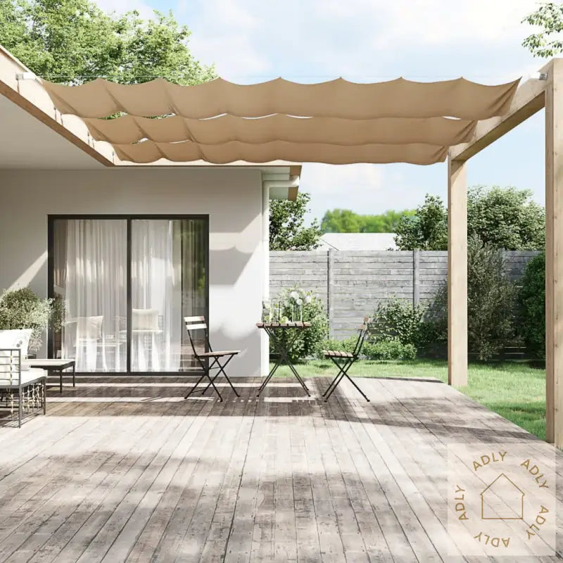 Premium-materiale: Laget av slitesterkt oxford-stoff (100% polyester), dette materialet tåler vær og vind. Stoffet er vannavstøtende og UV-bestandig, så det holder seg pent lenge og beskytter effektivt mot solen.