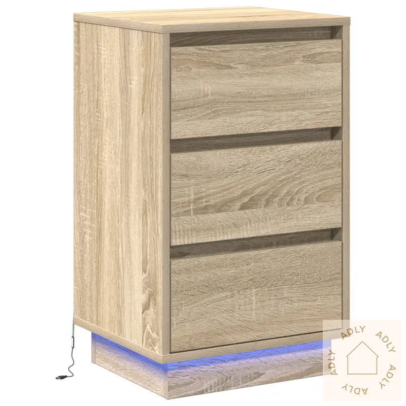 Møt vidaXL Nattbordet, den perfekte blandingen av stil og funksjonalitet for soverommet ditt. Dette moderne nattbordet laget av konstruert tre gir deg ikke bare et flott uttrykk med sin sonoma eikefinish, men også praktiske løsninger med tre dype og romslige skuffer. Den innebygde LED-belysningen i blått gir et stilig og stemningsskapende preg til interiøret, og passer fint sammen med andre møbler til hjemmet som bokhyller og stående hyller, for en komplett og moderne innredning.