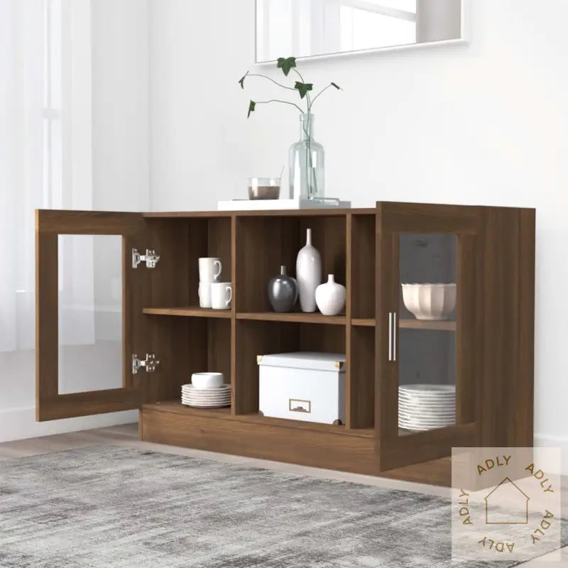 Dette stilige og praktiske vitrineskapet i fargen brun eik er et ideelt tillegg til hjemmet. Det kombinerer moderne design med funksjonalitet, og sørger for at du får en løsning som både ser flott ut og hjelper deg å holde orden.