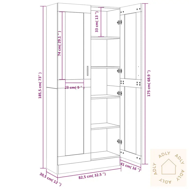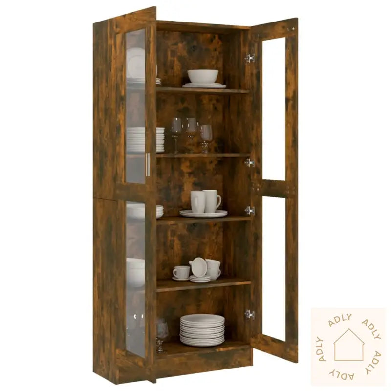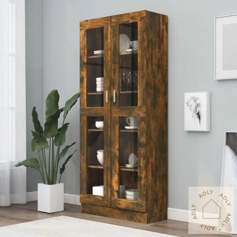 Skrue(r) og plugg(er) for feste inne i veggen er ikke inkludert. Velg skruer og plugger som er egnet for akkurat din veggtype. Ved usikkerhet, ta kontakt med fagfolk. Husk å følge veiledningen nøye under montering for å sikre korrekt sammensetning.Det følger med en tydelig monteringsveiledning i pakken, slik at du kommer raskt og greit i gang med oppsettet av ditt nye møbel.Farge: røkt eikMaterialer: konstruert tre og glassMål: 82,5 x 30,5 x 185,5 cm (B x D x H)Vitrineskapet leveres med 5 praktiske rom og 2 elegante glassdører, noe som lar deg vise frem pyntegjenstander eller oppbevare eiendelene dine støvfritt og lett synlig.Legal Documents: